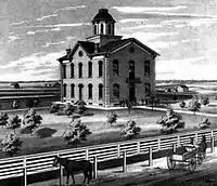 The Clark County, Missouri courthouse as it appeared circa 1878.