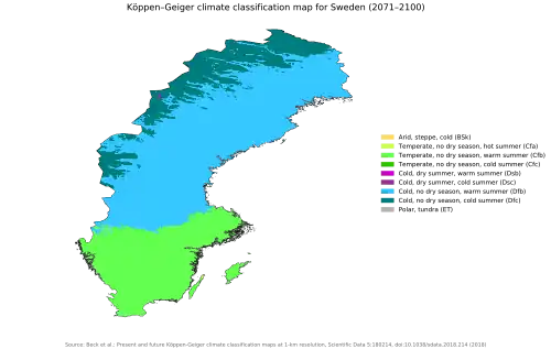 Predicted Köppen climate classification map for Sweden for 2071–2100