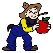 Cobden's claim to fame is its unique mascot, an Appleknocker, or a man with freckles wearing a straw hat and chewing on a piece of straw. This nickname originated when the high school first began to compete in athletics. It did not yet have a mascot, so other schools made up this derogatory term to insult the new school because of their large industry in peach and apple orchards. However, when Cobden High School played for the Illinois High School Boys Basketball Championshipin 1964, this name was cemented in the town's history and became part of its cultural identity, even though it lost to Pekin High School 50-45.