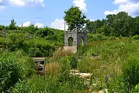 The main features of Coldwater Spring park are walking paths through a tallgrass prairie, the naturally occurring spring, and the historic springhouse and reservoir.[18] There is a .25-mile (0.40 km) crushed limestone path from the entrance that winds through the restored savanna to the historic springhouse structure. Beyond the springhouse, a 1-mile (1.6 km) hiking trail crosses the creek into the nearby woodlands and connects with the multi-use Minnehaha Trail, leading northward to Minnehaha Park or southward to Fort Snelling State Park. Bird watching and wildlife viewing are popular activities for visitors. The park has limited parking and there is no visitor's center or restroom facility.[19]