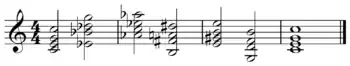 Coltrane changes (Coltrane Matrix or cycle, also known as chromatic third relations and multi-tonic changes) are a harmonic progression variation using substitute chords over common jazz chord progressions. These substitution patterns were first demonstrated by jazz musician John Coltrane on the albums Bags & Trane (on the track "Three Little Words") and Cannonball Adderley Quintet in Chicago (on "Limehouse Blues").[1] Coltrane continued his explorations on the 1960 album Giant Steps and expanded on the substitution cycle in his compositions "Giant Steps" and "Countdown", the latter of which is a reharmonized version of Eddie Vinson's "Tune Up". The Coltrane changes are a standard advanced harmonic substitution used in jazz improvisation.