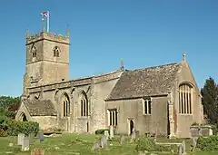 The Church of England parish church of St Laurence dates from the 12th century but was rebuilt in the late 14th century for Eynsham Abbey. Its interior has several 15th-century wall paintings,[2] which were rediscovered during restoration work in 1892.[3] St Laurence's is a Grade I listed building.[4] St Laurence's bell tower has a ring of six bells, cast by John Taylor & Co of Loughborough in 1924,[5] and a clock built by John Smith and Sons of Derby in 1948.[6]
