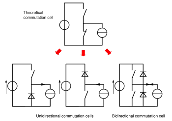 As a result, it can be seen that a commutation cell can only connect a voltage source to a current source (and vice versa). However, using inductors and capacitors, it is possible to transform the behaviour of a source: for example, two voltage sources can be connected through a converter if it uses an inductor to transfer energy.