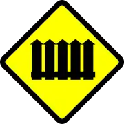 - ↑ Used in California only. Shared grade tram or streetcar crossings are typically unsigned in other jurisdictions.