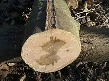 Example of compartmentalization, with radial and circular walling, in an Acer platanoides of 5 years