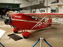 The prototype Swift (registered G-AARX) first flew at Hooton Park in January 1930.[1] The aircraft was a small single-seat, braced high-wing monoplane constructed of fabric-covered spruce wood frames.[2] The first Swift was powered by a 40 hp (30 kW) ABC Scorpion piston engine. After successful tests, seven more aircraft were built in 1930, powered by a 50 hp Salmson A.D.9 radial engine. Trials with Pobjoy P radial engine for use in air racing resulted in all the subsequent aircraft being powered by the Pobjoy R. The last three factory-built aircraft (sometimes called the Gipsy Swift) were fitted with de Havilland Gipsy engines – two with 120 hp (89 kW) Gipsy Major III, and one with a 130 hp (97 kW) Gipsy Major. In 1931, Arthur Butler flew G-ABRE to Australia in nine days.[3] After touring the Eastern States, the Swift had covered twenty three thousand miles. One of the Gipsy Swifts, owned by the then-Prince of Wales and future King Edward VIII, won second place in the 1932 King's Cup Race while being flown by his personal pilot.[4] Postwar, surviving Swifts continued to compete successfully in UK air races into the mid-1950s.