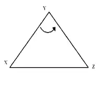 - Angle measures have signs. Here, they will be defined in the following way: Consider a triangle XYZ. The sign of angle ᗉ XYZ is positive if and only if the direction of the path along the shortest arc from side XY to side YZ is counterclockwise. The picture of the triangle on the right describes this. To make a comparison, when working with the unit circle, the angle measure is positive when going counterclockwise and negative when going clockwise.[4]