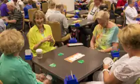 Duplicate bridge is played in clubs and tournaments, which can gather as many as several hundred players. Duplicate bridge is a mind sport, and its popularity gradually became comparable to that of chess, with which it is often compared for its complexity and the mental skills required for high-level competition. Bridge and chess are the only "mind sports" recognized by the International Olympic Committee, although they were not found eligible for the main Olympic program.[52] In October 2017 the British High Court ruled against the English Bridge Union, finding that Bridge is not a sport under a definition of sport as involving physical activity, but did not rule on the "broad, somewhat philosophical question" as to whether or not bridge is a sport.[53]