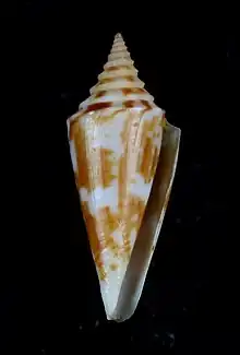 Abapertural view of shell of Conus scalarissimus da Motta, 1988.