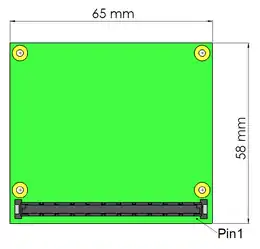 The specification defines a board size of 58 mm × 65 mm, slightly smaller than a credit card and small enough to allow a carrier board in standard PC/104-Plus format.