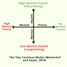 - ↑ Keyes, C. L. (2002). "The mental health continuum: From languishing to flourishing in life". Journal of Health and Social Behavior. 43 (2): 207–222. doi:10.2307/3090197. JSTOR 3090197. PMID 12096700.