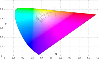- ↑ Schanda, János; Danyi, M. (1977). "Correlated Color-Temperature Calculations in the CIE 1976 Chromaticity Diagram". Color Research & Application. Wiley Interscience. 2 (4): 161–163. doi:10.1002/col.5080020403.