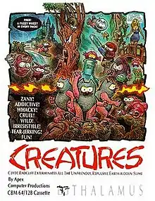 Creatures is a platform game for the Commodore 64 computer developed by Apex Computer Productions and released in 1990. The game was made by two brothers who were founders of the company, John Rowlands (programming) and Steve Rowlands (music and visual design). It was later ported by WJS Design for Atari ST and released in 1992 and to the Amiga in 1993.