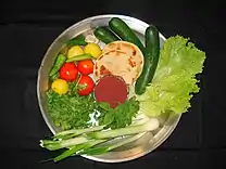 Vegetarian cuisine plays an important role in the cuisine of Lebanon. Being located in the Levant, vegetables and herbs (wild or cultivated) are abundant in the fertile landscape and serve as a main base of the cuisine.[69] For Lebanese Christians, including Catholic (Maronites and Melkites) and Orthodox, fasting from meat is practiced over the Lenten period (from midnight to noon) during Easter. Where abstention of meat is observed, the food is referred to as akl aateh (meaning food "cut" from the diet, such as meat or absent from meat). The particular food that is "cut" varies over different traditions.[70]