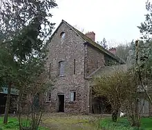 The original buildings were mostly demolished in 1830. The existing structure dates from soon afterwards,[3] and is on the site of the now demolished 17th-century house that held the Jesuit college and incorporates part of it. Enough remains of the original house, half-way up the long range of hills which slope down to the River Monnow, to trace the life led by its Jesuit inmates in the penal times.[3] Originally a shooting box, and subsequently a farmhouse, it is Grade II listed, together with the terrace in front of the house, and the retaining wall to the side, which contains rare bee boles.[18][19] There is a wood in the area known today as Cwm Wood.