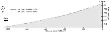 - ↑ Lamb, Michael P.; Parsons, Jeffrey D.; Mullenbach, Beth L.; Finlayson, David P.; Orange, Daniel L.; Nittrouer, Charles A. (2008-03-01). "Evidence for superelevation, channel incision, and formation of cyclic steps by turbidity currents in Eel Canyon, California". GSA Bulletin. 120 (3–4): 463–475. Bibcode:2008GSAB..120..463L. doi:10.1130/B26184.1. ISSN 0016-7606.