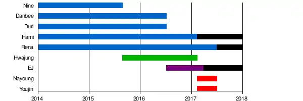 - ↑ "걸그룹 디홀릭, 새 멤버 '화정' 영입…1995년생" (in Korean). Ten Asia. 2015-09-09. Archived from the original on 2017-08-30. Retrieved 2017-07-18.