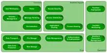 • Architecture : Blaauw argued that, "The architecture of a system can be defined as the functional appearance of the system to the user, its phenomenology."[11] When discussing the architecture of an infrastructure facility, we limit ourselves to the essentials: what does it do? To this end, we regard the facility as an infrastructure service, compounded of basic, atomic infrastructure functions. Atomic infrastructure function in this respect means a logical infrastructure function that cannot be meaningfully subdivided into sub-functions—at least not meaningfully for architectural purposes.