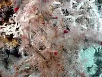 Other than volcanic activity, the animals that live on the seamount were also observed. For the first time, sea anemones were seen growing on the tips of tubeworms in the area.[14]