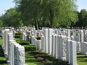 Dawes Road Cemetery is a Jewish cemetery in Toronto, Ontario, Canada. It is located in Scarborough, on St. Clair Avenue east of Victoria Park Avenue. Established in 1903, it was the third Jewish cemetery in Toronto. The first cemeteries, the Pape Avenue Cemetery and Jones Avenue Cemetery, had been established in the eastern part of the city. Dawes Road Cemetery was also placed in what was then a rural area on the edge of the city. Since then some 13,000 people have been buried there, including 11 Canadian servicemen of World War II whose graves are registered by the Commonwealth War Graves Commission.[1]