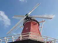 In 1804 and in 1810, two watermills were built in the 5th division of Reiderland near Winschoterzijl in the Netherlands.[4][1] The younger of the two burned down in 1814.[5][6][7] Subsequently, in 1815,[8] a mill was constructed featuring two screws and a wingspan of 77 ft (23 metres), which is now located in Aruba.[9] In 1883, it was sold to a Geert Rikus Luth for one-hundred guilders and later came into ownership of the Snelter family.[9][2] In 1897, it was relocated to Wedderveer, Groningen.[10][5]