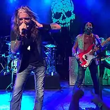 The band toured in 2013, including opening for ZZ Top[9] and joining Aerosmith on their Australian and New Zealand tour.[10] This was followed by the 25-date Uproar Festival in August and September 2013 (with Jane's Addiction and Alice in Chains, among others).[11] These shows were performed by the first full lineup of the band, which consisted of Lowy and Stevens along with drummer Frank Ferrer (also of Guns N' Roses), guitarist Richard Fortus (also of Guns N' Roses, formerly of Thin Lizzy and Psychedelic Furs), bassist Marco Mendoza (Whitesnake/Thin Lizzy), and pianist Dizzy Reed (from Guns N' Roses). Lead singer Stevens performed for a while with casts on his hand and leg as a result of an injury sustained when escaping from a crocodile on a fishing excursion in Australia.[12]