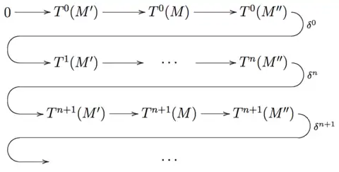 Given two abelian categories A and B a covariant cohomological δ-functor between A and B is a family {Tn} of covariant additive functors Tn : A → B indexed by the non-negative integers, and for each short exact sequence