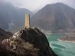The Qiang were first described as nomadic shepherds living in the region of contemporary Gansu and Qinghai provinces. Unlike other nomads, the Qiang did not shave their heads and wore their hair loose over their face.[48] At some point prior to the modern era they settled and adopted an agricultural way of life.[49] Due to constant conflict between Qiang tribes and other peoples, the Qiang built numerous stone guard towers with small windows and doors, giving them the moniker of "Stone Tower Culture". These constructs, described as Himalayan Towers, can be found today in eastern Tibet and Sichuan Province.[50]