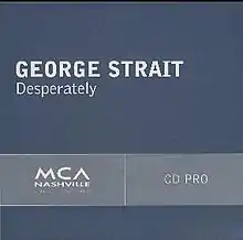 "Desperately" is a song written by Bruce Robison and Monte Warden. Robison first recorded the song on his 1998 album Wrapped. It was later covered by American country music artist George Strait on his 2003 album Honkytonkville. Released in January 2004 as that album's third and final single, it peaked at number 6 on the Billboard country charts. Its B-side, "Honk If You Honky Tonk", peaked at number 45 based on unsolicited airplay.[1]