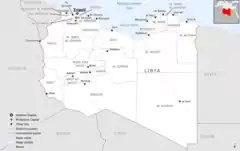 Detention facilities are centred around Bani Walid[3] where there are approximately 20 camps including Bani Walid detention camp.[1] Al Mabani centre, which opened in January 2021, is located in Tripoli and detains approximately 1,500 abductees.[6] The Triq al-Sika detention centre is located in Tripoli.[9] The Tajoura Detention Center is located 16 kilometres east of Tripoli.[11] The Al Nasr centre, also known informally as the "Osama prison," is located in Zawiyah.[2]