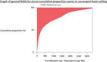 Detrital zircon geochronology has become increasingly popular in geological studies from the 2000s mainly due to the advancement in radiometric dating techniques.[1][2] Detrital zircon age data can be used to constrain the maximum depositional age, determine provenance,[3] and reconstruct the tectonic setting on a regional scale.[4]
