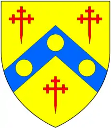 Bellot Argent, on a chief sable three cinquefoils of the field Downton[lower-alpha 3]