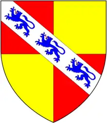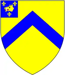 Clapham[10] Argent, on a bend azure six fleurs-de-lys or, two, two and two Barnstaple; (Beamsley Hall,[lower-alpha 9] Yorkshire)