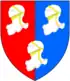 Cholmeley Gules, in chief two close helmets argent in base a garb or Tiverton