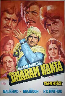 Dharam Kanta (transl. Balance of Piety) is a 1982 Hindi-language action film, produced and directed by Sultan Ahmed under the Sultan Productions banner. It stars Raaj Kumar, Waheeda Rehman, Jeetendra, Rajesh Khanna, Reena Roy, Sulakshana Pandit, Amjad Khan in the pivotal roles and music composed by Naushad.[1] The movie was a hit on its release and completed silver jubilee
