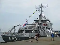 • Until a few years ago the Dutch Navy also operated an oceanographic survey vessel (HNLMS Tydeman) which was primarily used for deep sea charting. Oceanographic surveys were often carried out in collaboration with universities. The ship was sold in 2006 and now serves as arctic cruise ship.