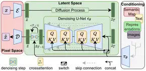 Since the diffusion model is a general method for modelling probability distributions, if one wants to model a distribution over images, one can first encode the images into a lower-dimensional space by an encoder, then use a diffusion model to model the distribution over encoded images. Then to generate an image, one can sample from the diffusion model, then use a decoder to decode it into an image.[15]