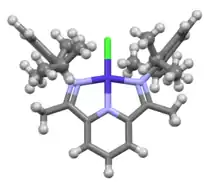 - ↑ Bart, S.C.; Chlopek, K.; Bill, E.; Bouwkamp M.W.; Lobkovsky, E.; Nesse, F.; Weighardt, K.; Chirik, P. J. (2006). "Electronic Structure of Bis(imino)pyridine Iron Dichloride, Monochloride, and Neutral Ligand Complexes: A Combined Structural, Spectroscopic, and Computational Study". Journal of the American Chemical Society. 128 (42): 13901–13912. doi:10.1021/ja064557b. PMID 17044718.