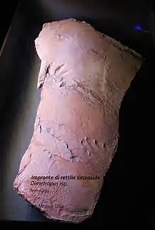 Dimetropus is a reptile ichnogenus commonly found in assemblages of ichnofossils dating to the Permian[1] to Triassic[2] in Europe[2][3] and North America.[1] Analysis of trackways of Dimetropus provides evidence that the tracks were left by diadectids or non-therapsid synapsids ("pelycosaurs").[4]