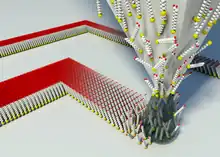 - ↑ Lenhert, Steven; Sun, Peng; Wang, Yuhuang; Fuchs, Harald; Mirkin, Chad A (2007). "Massively parallel dip-pen nanolithography of heterogeneous supported phospholipid multilayer patterns". Small. 3 (1): 71–75. doi:10.1002/smll.200600431. ISSN 1613-6810. PMID 17294472. S2CID 32133498.