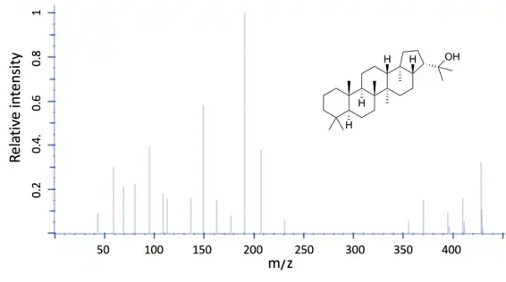 Mass spectrum of diplopterol (modified from Wiley SpectraBase).