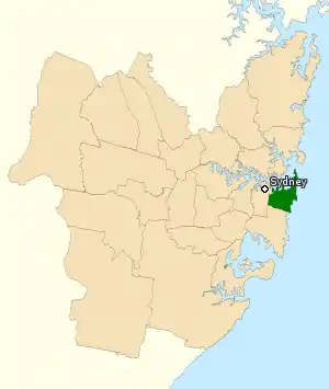 The Division of Wentworth is an Australian electoral division in the state of New South Wales. The division encompasses the suburbs to the east of Sydney CBD, mostly Woollahra and Waverley council in Sydney's Eastern Suburbs.