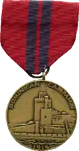 The Dominican Campaign Medal is a military decoration of the United States Navy and United States Marine Corps which was created on December 29, 1921. To be awarded the Dominican Campaign Medal, a servicemen must have performed active military duty in the Dominican Republic between May 5 and December 4, 1916.[1]