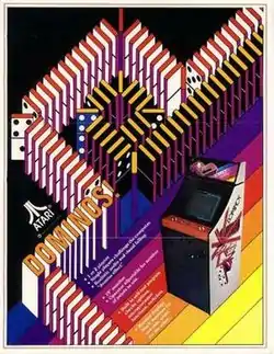 Atari's Dominos is a one, two or four-player video action game packaged in its own distinctively styled upright cabinet that rest directly on the floor.