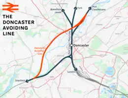 The Doncaster Avoiding Line is a railway line, which as its title suggests, avoids the town of Doncaster and routes goods traffic, principally coal and steel, away from the main line station where it would have to cross from the Sheffield line to the Hull or Cleethorpes lines and cause a bottleneck.