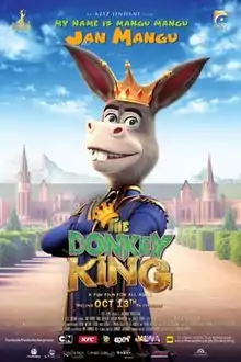 The Donkey King (Urdu: دا ڈونکی كِنگ) is a 2018 Pakistani animated comedy film, directed by Aziz Jindani. The film features the voices of Jan Rambo, Ismail Tara, Hina Dilpazeer, Ghulam Mohiuddin, and Jawed Sheikh. It was released in Pakistan on 13 October 2018 by Geo Films and Talisman Studios.[5] After its national success, it became the first Pakistani film to be dubbed into ten languages for multiple international theatrical releases, distributed worldwide by Annalisa Zanierato, for Pantera Film.[2]