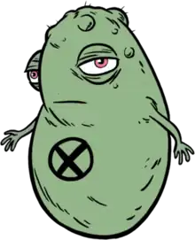 Doop is a fictional character appearing in American comic books published by Marvel Comics. The character appears in the Marvel Universe, created by writer Peter Milligan and artist Mike Allred. He made his debut in X-Force #116.[1] He is a green, floating reniform creature of unknown origins who speaks in a "language" all his own (represented in text by a special font).[2]