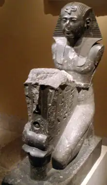 Both ancient and modern Egyptians commonly believed in spiritual possession and practised techniques for freeing the victim. Examples survive from ancient times showing how a statue of a god, propitiated with offerings, brought the release of a possessed person. In modern times the person who presides over such a ritual is called a shaykh and, similar to ancient practices, offerings are made to the spirit which has taken up residence in the person.[54] An alternative way is a ceremony called the butadjiyya, in which words are recited from the Quran with the patient immersed in the smoke of incense. A Christian method involves a pilgrimage to a Coptic Church at Mit Damsis. After ten days without washing it is hoped that St. George will appear and pierce the patient's foot from which the demon will depart.[55]