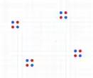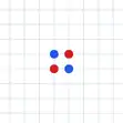 Dots is played on a grid of any finite size, traditionally 39x32, the size of the grid that is often encountered on a page of squared copybook in Russia. Players take turns to place a dot of their own color (players usually being red and blue) on an empty intersection of the grid.