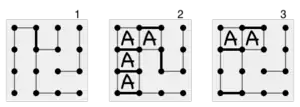 - ↑ Holladay, J. C. (1966), "A note on the game of dots", American Mathematical Monthly, 73 (7): 717–720, doi:10.2307/2313978, JSTOR 2313978, MR 0200068.